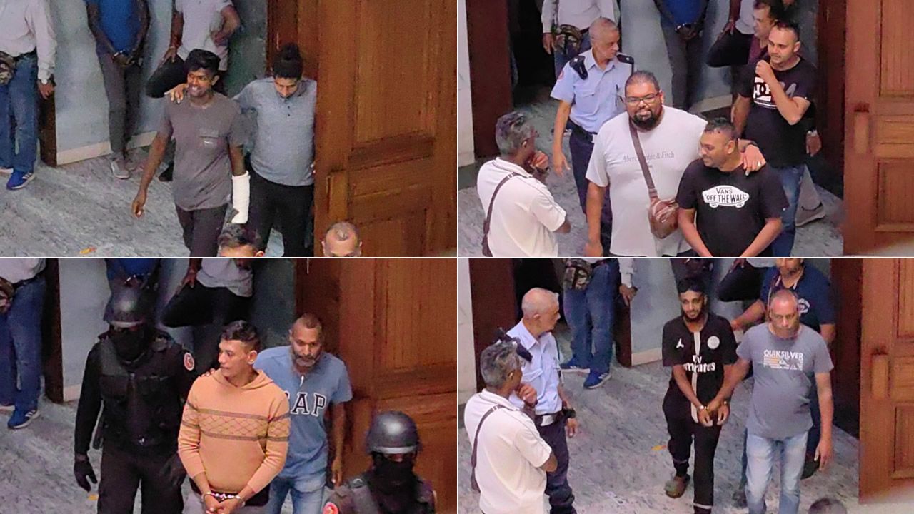 Le dimanche 5 mai, ils ont été provisoirement inculpés d’agression avec préméditation devant la Bail & Remand Court (BRC). L’exercice s’est deroulé sous forte présence policière : GIPM , SSU et MCIT et CID Port-Louis Nord. Les suspects Bacsoo, Bageeruty, Kurmally, Chetty et Marie, de habitants de Terre-Rouge et de Port-Louis, sont connus des services de police.